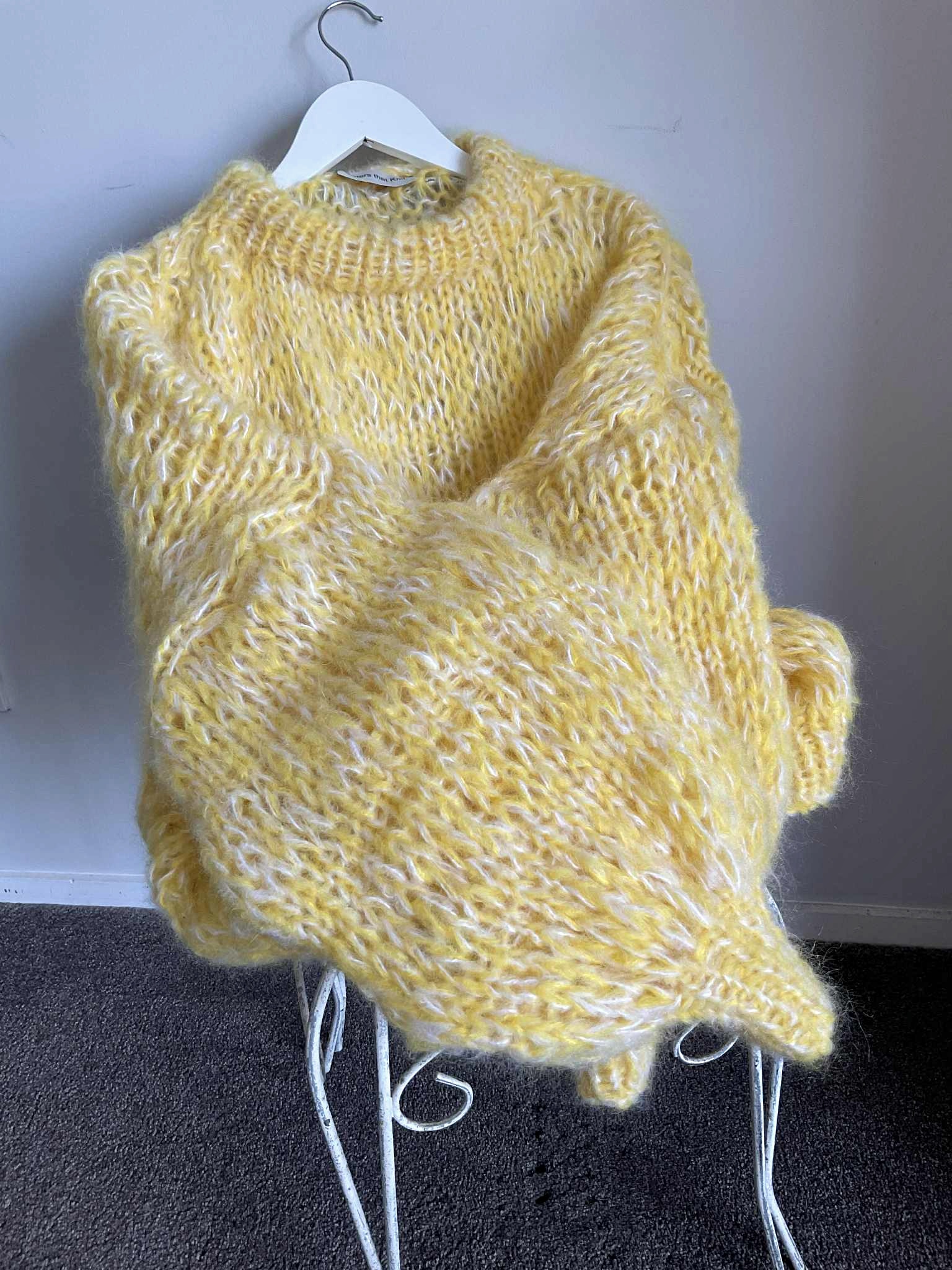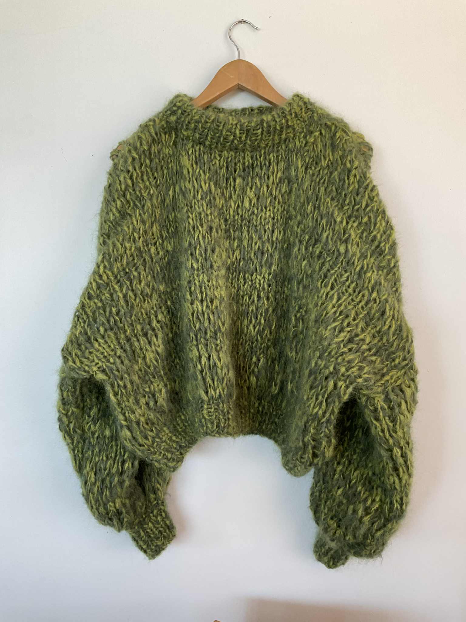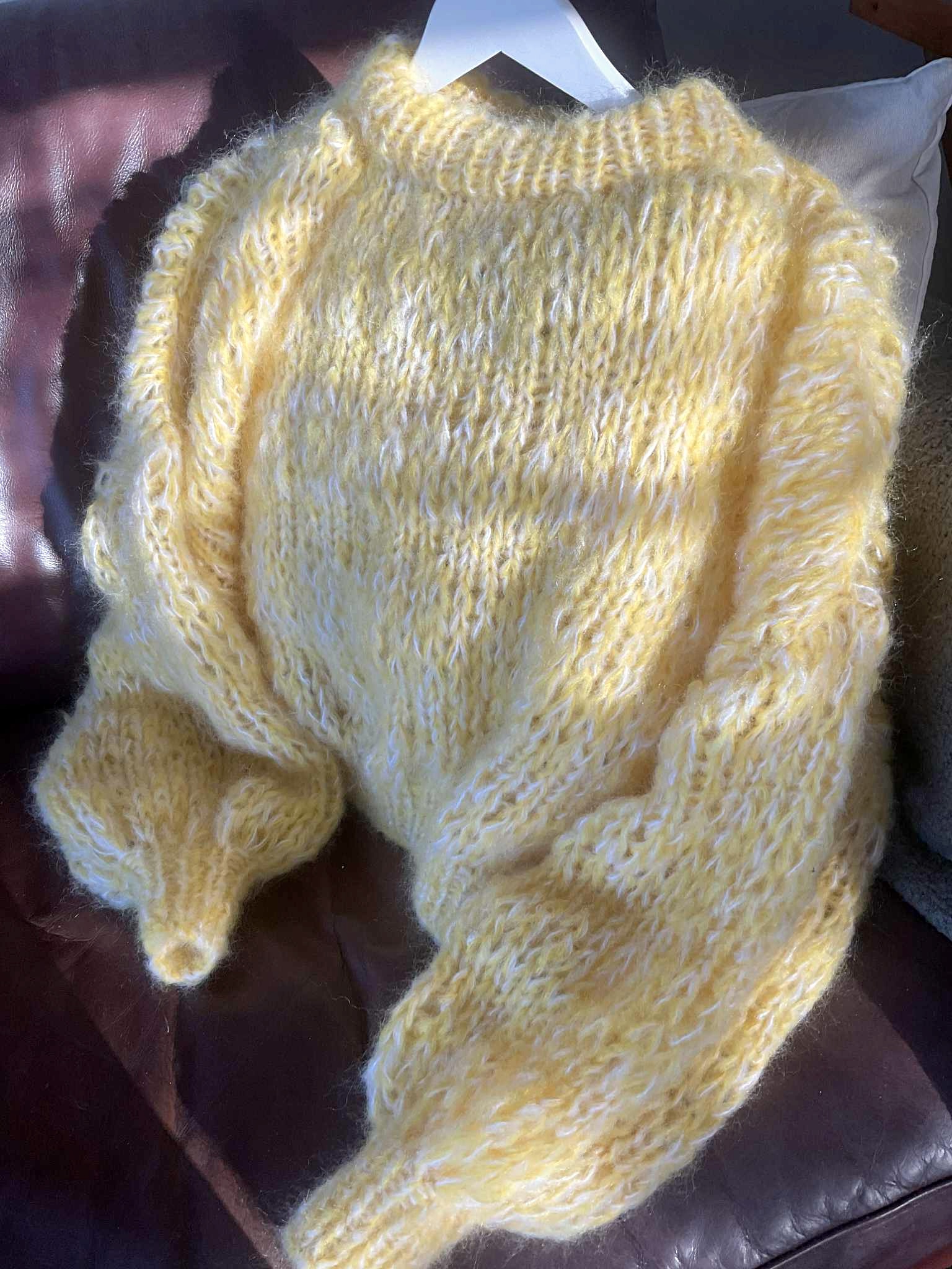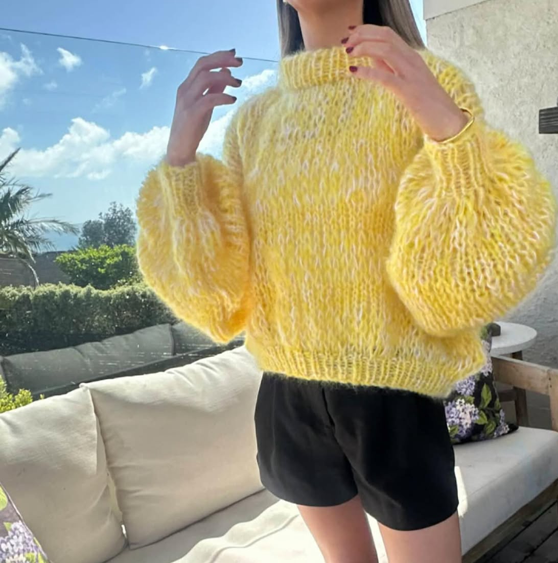 Wrap yourself in colour and comfort with this hand-knitted mohair piece — a true labour of love. Each sweater is crafted by hand, making every one unique in its blend of tones and textures. The soft mohair yarn gives it a lightweight yet luxuriously warm feel, perfect for layering across seasons.