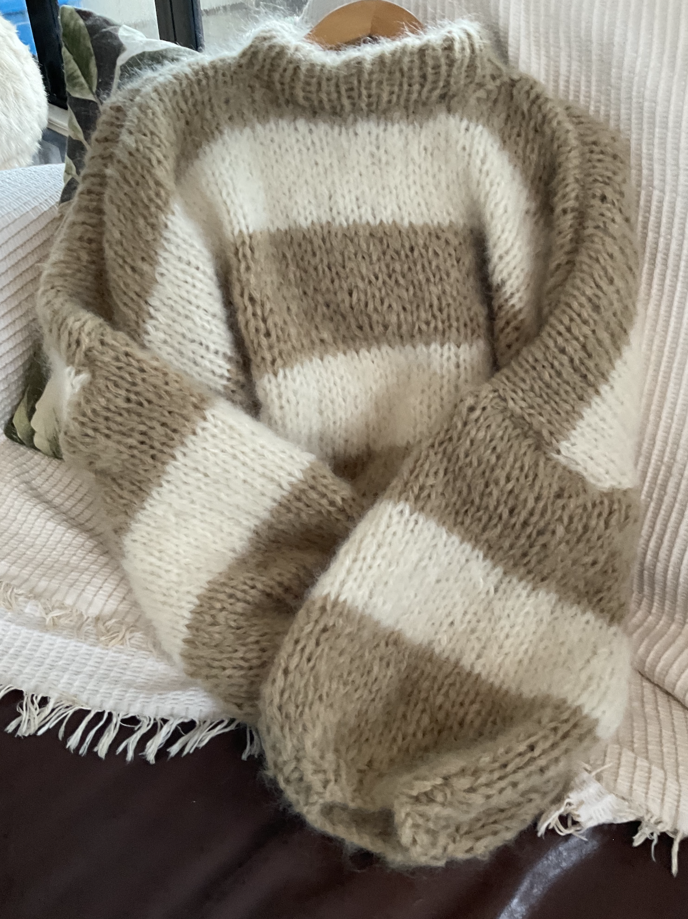 The Sofia is a sister to our Isabella Jumper knitted in 100% mohair and block coloured. She features the same pattern – with balloon sleeves and a beautiful double-ribbed neckline making the Sofia the perfect addition to our collection. If you would like to request a custom colour of your choice please just get in touch and we will be happy to work with you to create your perfect knit.